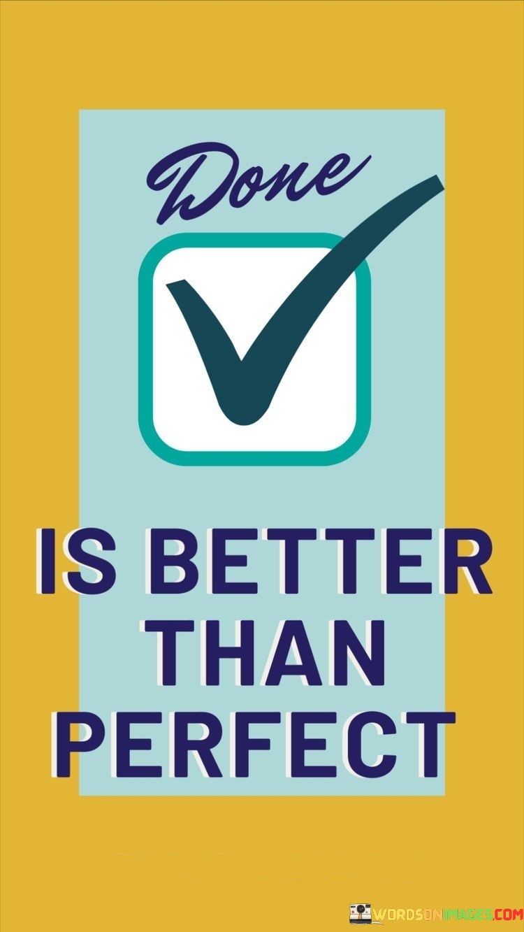 It's important to recognize that "Done Is Better Than Perfect" doesn't mean settling for mediocrity or low-quality work. Instead, it promotes the idea of achieving a balance between striving for excellence and recognizing when a task or project has reached a satisfactory level. This quote encourages efficiency and acknowledges that in the real world, deadlines and practical constraints often make it more valuable to finish and move on to the next task rather than endlessly refining and perfecting.