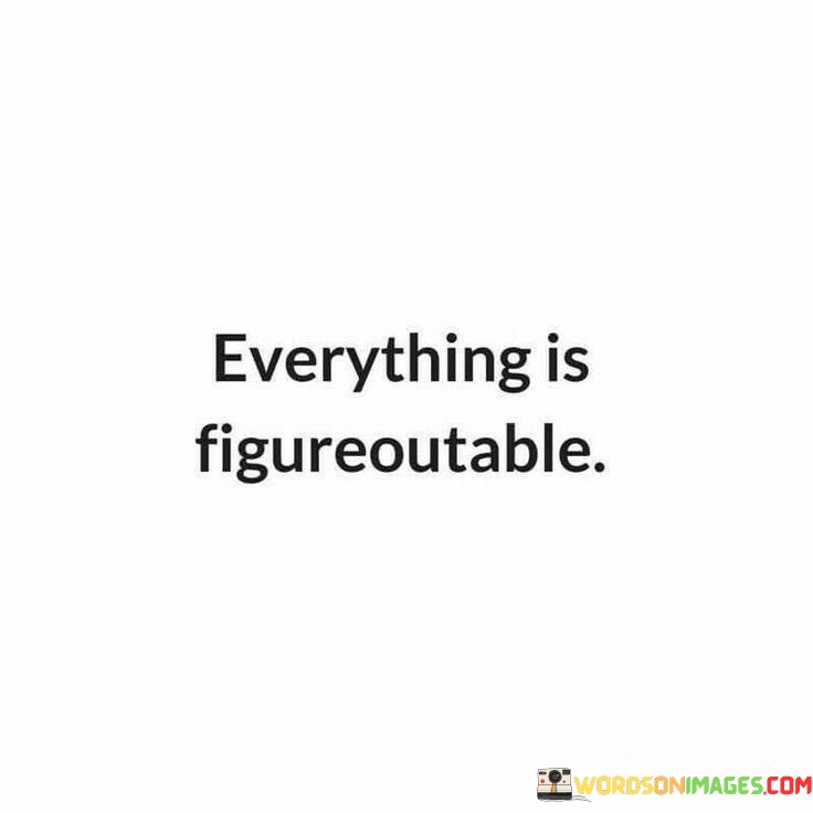 Unleashing the potential for solutions. This quote serves as a motivational mantra, inspiring individuals to tap into their resourcefulness and adaptability. It reinforces the idea that there are often multiple paths to solving a problem, and with a "figureoutable" mindset, one can unlock their problem-solving potential. It encourages people to embrace challenges as opportunities for growth and discovery, knowing that they have the ability to find solutions and chart their own path forward.