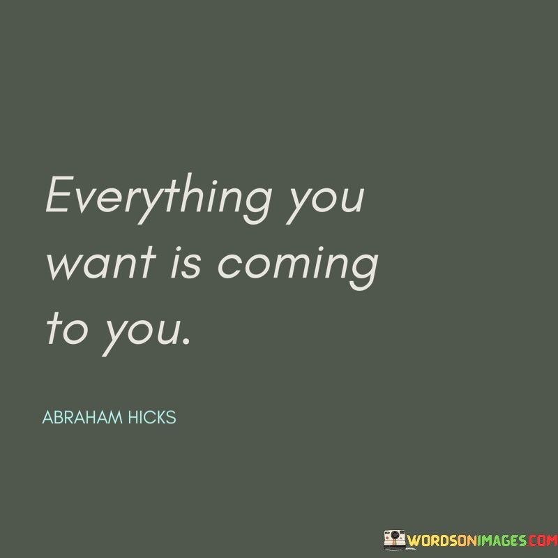 This quote is a hopeful message that suggests that the things you desire in life are on their way to you. It encourages a positive outlook, believing that your wishes and goals will eventually be fulfilled.