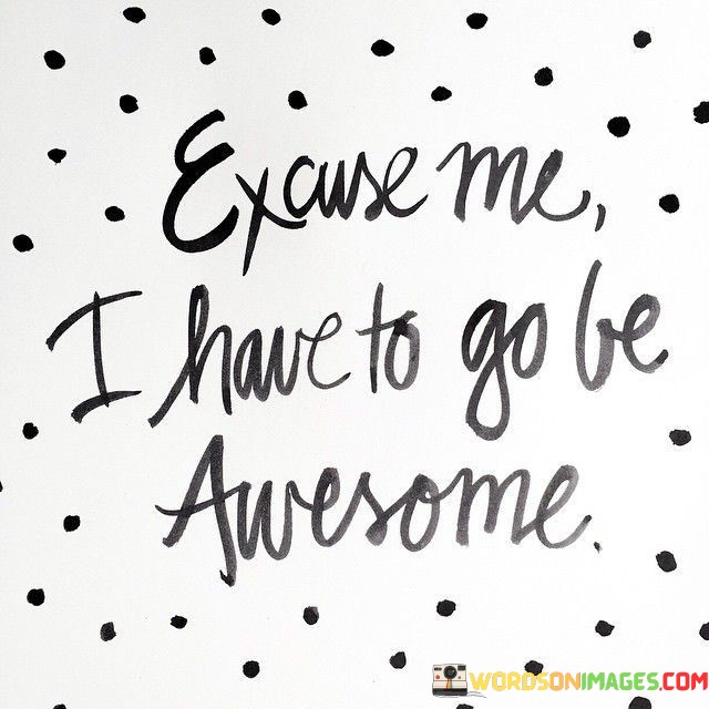 Ultimately, "Excuse Me I Have To Go Be Awesome" challenges us to break free from the mundane, to excuse ourselves from the ordinary, and to embark on a journey of self-discovery and self-expression. It reminds us that each of us has the potential to be remarkable in our own right and that the pursuit of our passions and dreams is a noble endeavor worth every effort. So, the next time life presents an opportunity, remember this quote and go be awesome!