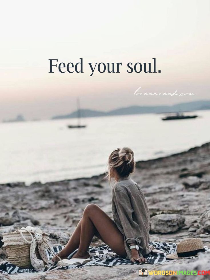 Neglecting our soul's needs can lead to feelings of emptiness and discontent. So, this quote encourages us to prioritize self-care and seek out experiences that nurture our inner being. When you "feed your soul," you enhance your overall well-being and find a deeper sense of happiness and purpose in life.