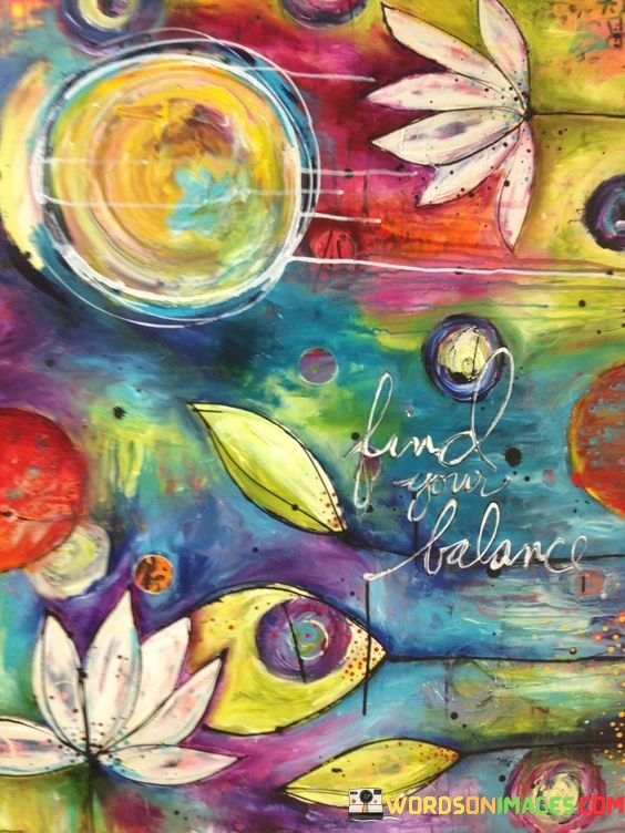 The quote "Find Your Balance" encourages individuals to seek equilibrium in various aspects of their lives. It emphasizes the importance of finding a harmonious blend between different responsibilities, priorities, and self-care.