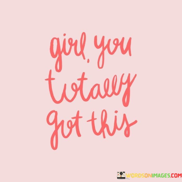 This quote is all about empowerment and confidence, specifically directed towards a girl or woman. It's like a friendly and encouraging pep talk that says, "You have what it takes to succeed; you're fully capable of handling this situation or challenge."