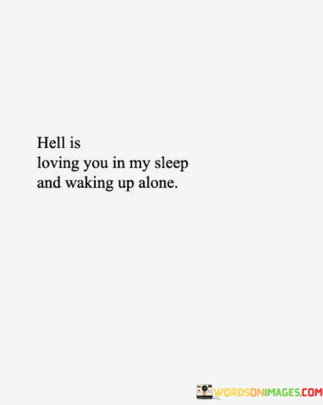 In simple terms, this quote conveys the heartache of loving someone who is not with you, where the contrast between the dream world of love and the loneliness of reality feels like a painful experience.
