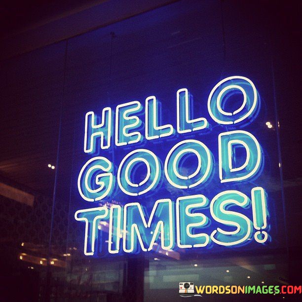 Moreover, this quote can serve as a mantra for seeking out and creating more good times. By consciously looking for and creating opportunities for joy, we can make "Hello Good Times" a recurring theme in our lives. In essence, it encourages us to focus on the positive aspects of life and cherish the moments that bring us happiness and fulfillment.