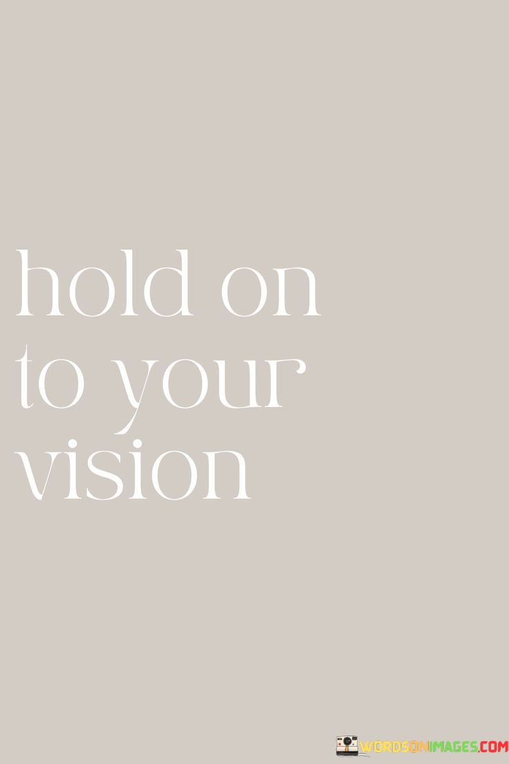 This phrase encourages us to keep our dreams and goals close to our hearts and not let go of them easily. It's like clutching onto a precious treasure that you believe in. When you hold onto your vision, you stay focused on what you want to achieve.