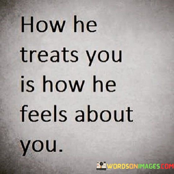 In essence, this quote emphasizes the importance of actions over words when it comes to understanding how someone truly feels about you. It reminds us that actions speak louder than words and that we should evaluate a person's feelings based on how they treat us consistently. So, pay attention to the way someone treats you; it can provide valuable insights into their emotions and intentions.