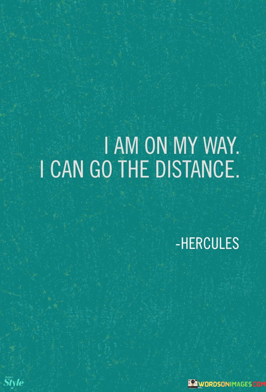 This quote is all about determination and the belief that someone is capable of achieving their goals. When it says, "I am on my way," it means the person is already on their journey towards something. They've started and are making progress. It's like saying, "I've begun my journey."