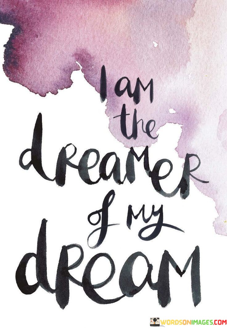 The quote "I Am The Dreamer Of My Dream" encapsulates the idea that each person is the author and creator of their own dreams and aspirations. It emphasizes the role of individual agency and imagination in shaping one's goals and desires.