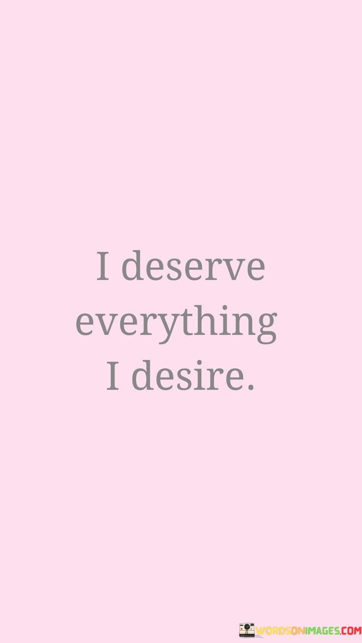 By boldly stating "I deserve," the quote indicates the speaker has overcome feelings of unworthiness. They recognize their inherent value as a human being and feel aligned with their authentic desires. The quote suggests the speaker is releasing any guilt, shame or hesitation in claiming what they want.