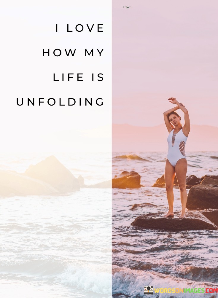 When someone says, "I love how my life is unfolding," it means they are finding joy and satisfaction in the way things are progressing. It's a recognition that life is full of unexpected twists and turns, and even amidst uncertainties, there is beauty in the unfolding of events.