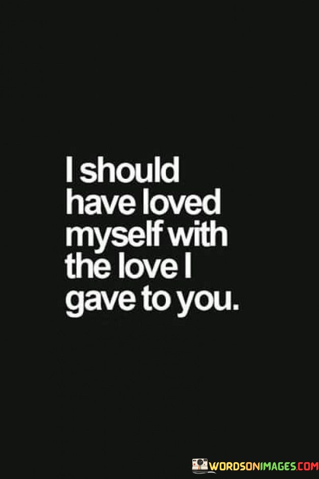 When someone says, "I should have loved myself with the love I gave to you," they are acknowledging that they may have neglected their own well-being and self-esteem in the process of loving and caring for someone else. It's a recognition that we often prioritize others' happiness and needs at the expense of our own.