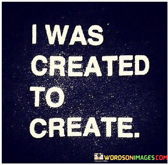 The quote "I Was Created To Create" carries a profound message about one's purpose and creative potential. In straightforward terms, it means that each person has a unique ability to bring something new and imaginative into the world.