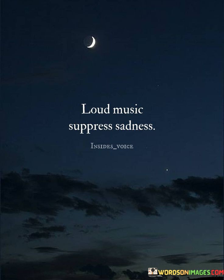 This quote suggests that listening to loud music can have a powerful impact on our emotions, particularly in masking or temporarily suppressing feelings of sadness or sorrow. It implies that loud music has the ability to override or drown out the sadness we might be feeling, at least for a while.