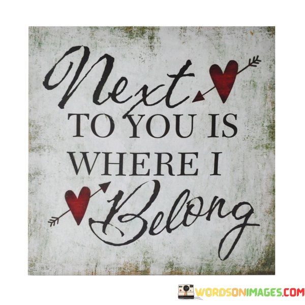 In essence, "Next to you is where I belong" celebrates the idea that our sense of home and belonging is not necessarily tied to a physical place but can be found in the presence of someone who holds a special place in our heart. It's a beautiful expression of the emotional connection and comfort that can be experienced in the company of a loved one.
