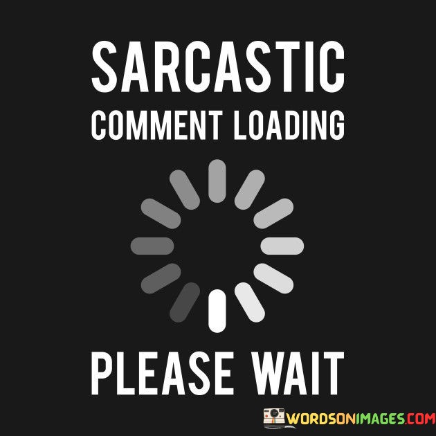 This quote is a playful way of letting others know that the speaker is about to be sarcastic. Sarcastic comments are often used to mock or make fun of something in a humorous way. So, when someone says, "Sarcastic Comment Loading Please Wait," they are preparing you for a witty or mocking remark that is meant to be funny.