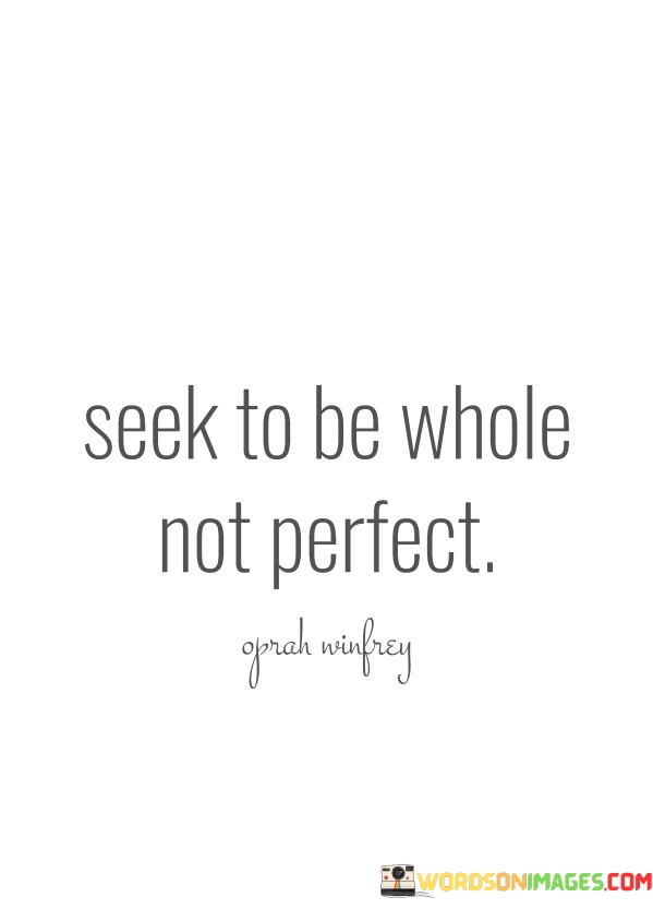 The quote "Seek-To-Be-Whole-Not-Perfect" carries a valuable message about personal growth and self-acceptance. It encourages us to focus on becoming whole individuals rather than striving for an unattainable state of perfection.