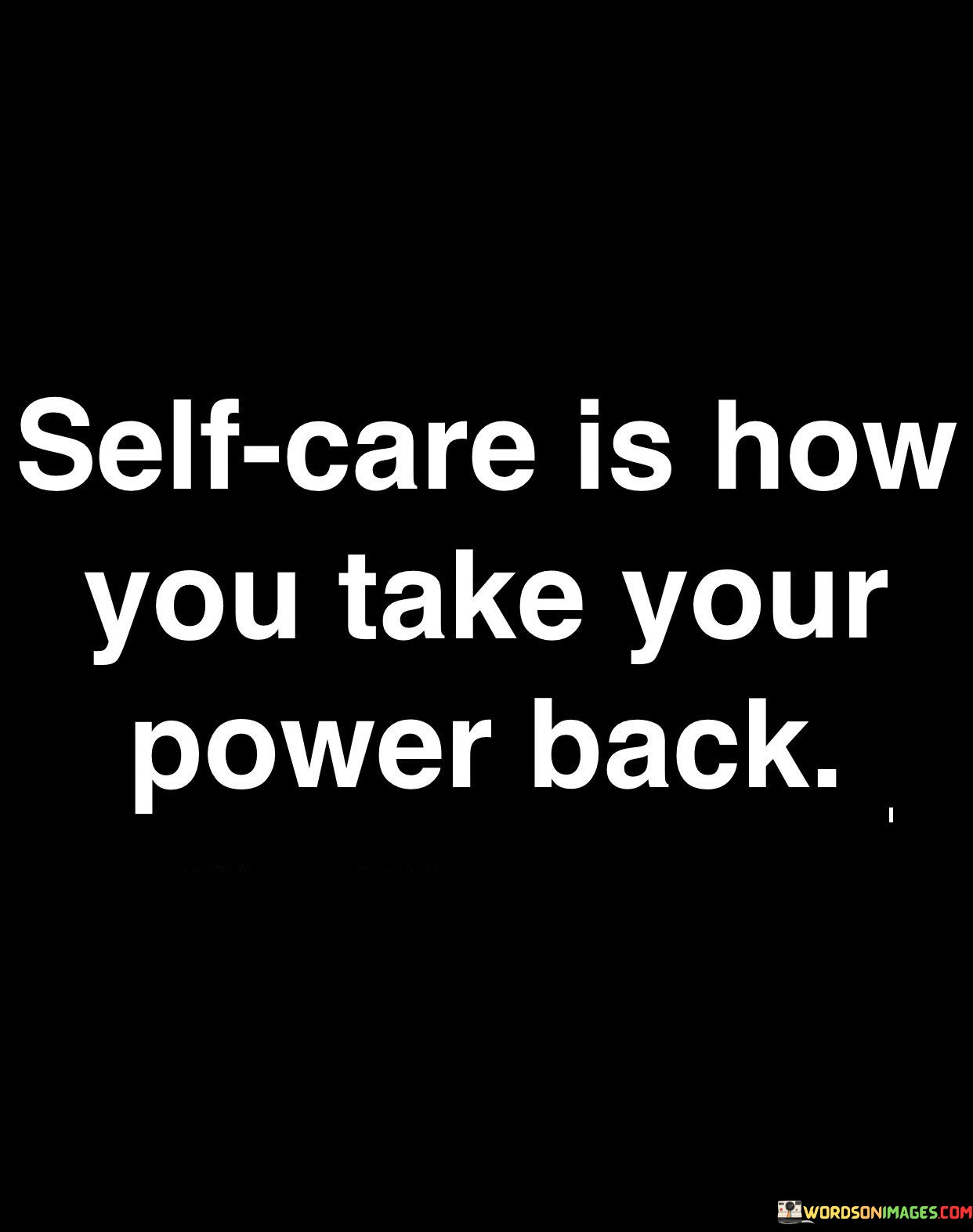 Taking care of yourself is like reclaiming your control. It's about making choices to keep yourself healthy and happy. It's not being selfish; it's about recognizing your needs and making sure they are met. When you practice self-care, you are saying, "I matter," and that's powerful.