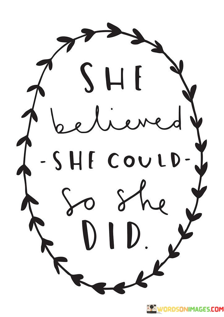 This quote, "She Believed She Could So She Did," is all about the power of self-belief and determination. It tells us that when a person truly believes in themselves and their abilities, they can accomplish what they set their minds to.
