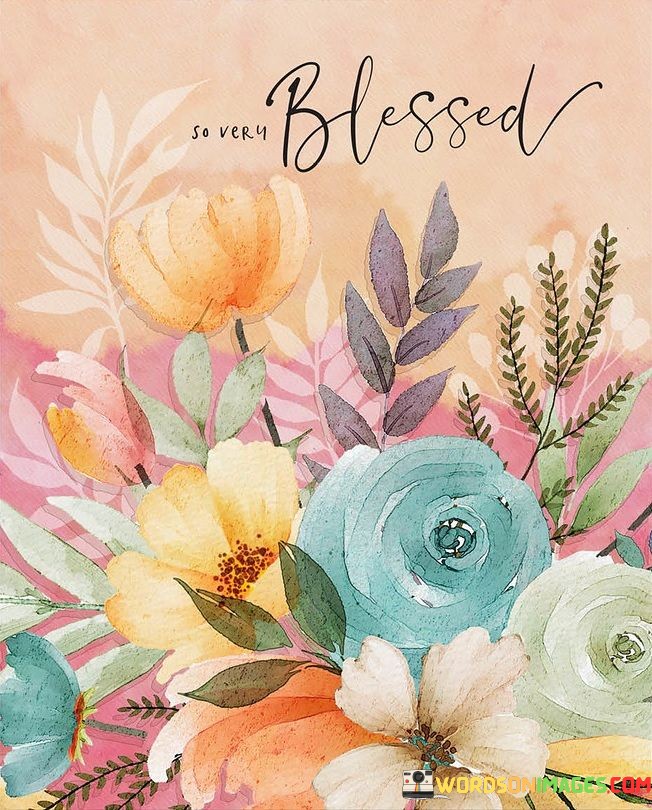 This quote, "So Very Blessed," expresses a feeling of deep gratitude and happiness. When someone says they are "blessed," they mean that they feel fortunate and thankful for the good things in their life. The word "so" emphasizes the strong sense of this feeling, like they are extremely grateful.