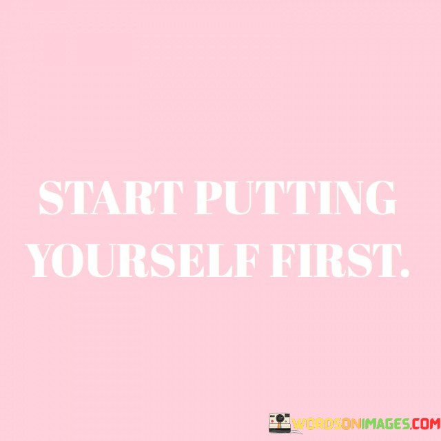 Begin prioritizing yourself. It means taking care of your needs and well-being before others. Sometimes, we focus so much on helping others that we forget about ourselves. This quote reminds us that it's okay to think about our own happiness and needs.