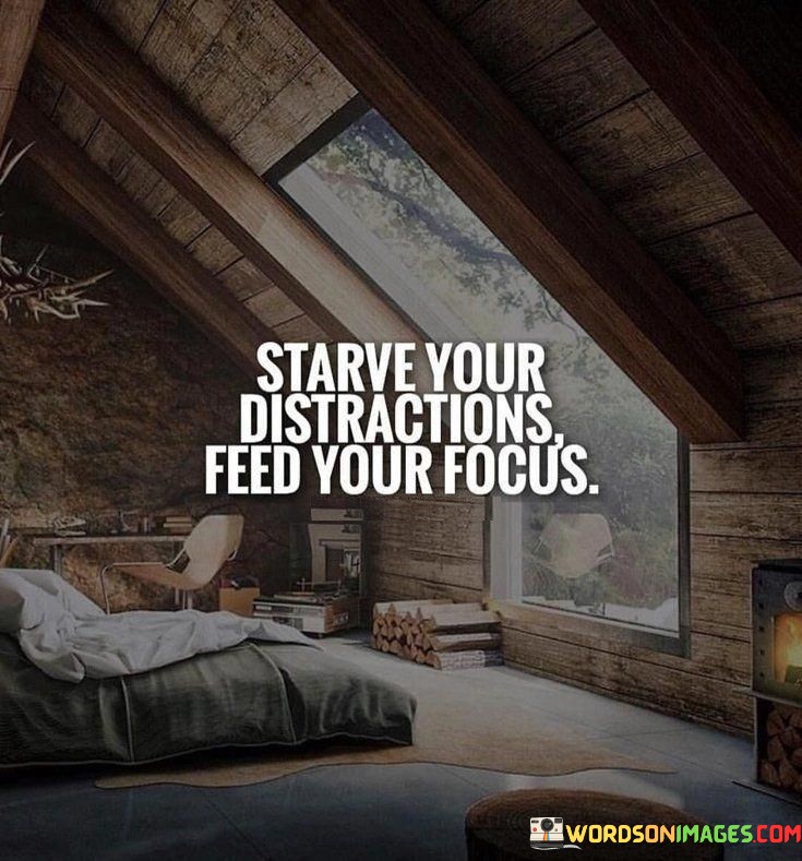 In simple terms, this quote advises us to concentrate on our goals and not let distractions get in the way. Just like when you're watching a movie – if you keep looking at your phone, you'll miss the plot. So, it's about giving your full attention to what you want to achieve and not letting distractions steal your focus. When you starve your distractions and feed your focus, you can accomplish more.
