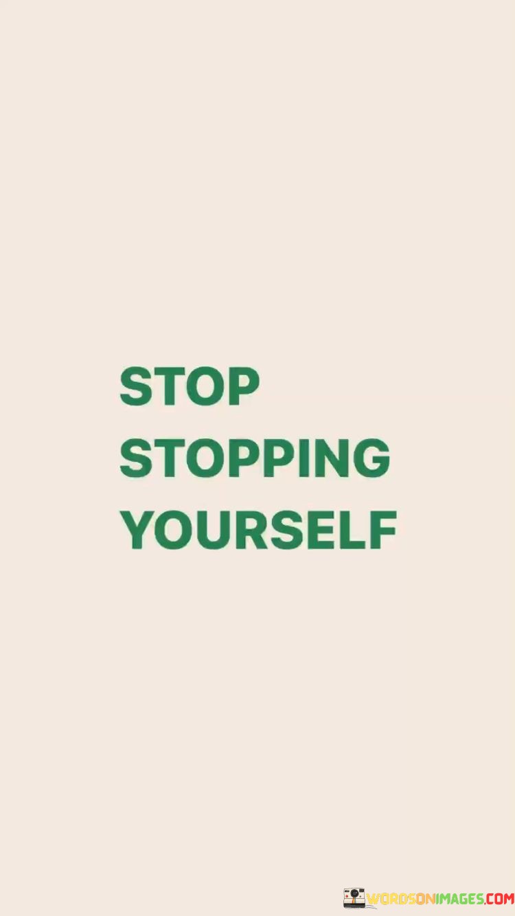 So, this quote serves as a reminder that we have the power to overcome self-imposed limitations. By stopping the act of hindering our own growth and embracing self-belief and determination, we can achieve more than we ever thought possible. It encourages us to be our own cheerleaders and take the necessary steps towards reaching our full potential.
