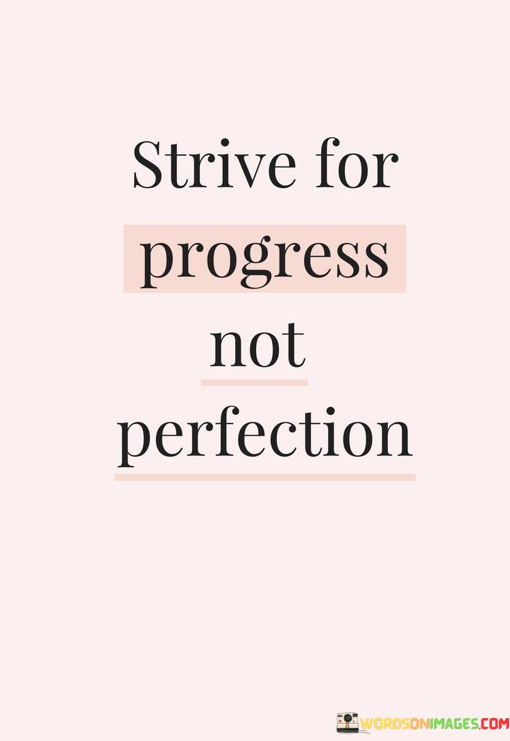 Striving for progress, not perfection, means focusing on growth and improvement rather than obsessing over flawless outcomes. It's like aiming to climb a mountain, not to reach its peak instantly but to steadily ascend, one step at a time. This quote encourages us to embrace our imperfections and view them as opportunities for learning and development.