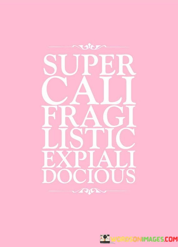 The phrase "Super Cali Fragilistic Listic Expiali Docious" is actually a whimsical and playful term coined in the famous movie "Mary Poppins." It's not a traditional quote with a deep meaning. Instead, it's a made-up word that Mary Poppins uses to describe something extraordinary or fantastic. This wordplay captures the magical and enchanting essence of the movie.