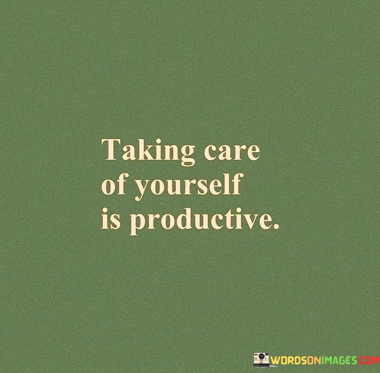 This quote emphasizes that looking after your well-being is a form of productivity. It may seem like productivity is only about getting tasks done, but taking care of yourself plays a crucial role in your overall effectiveness.