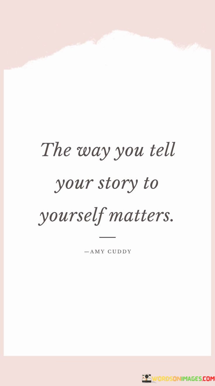 The message behind this quote is about the power of self-narrative. It emphasizes that the stories we create in our own minds about our lives, experiences, and challenges have a significant impact on how we perceive and navigate the world.