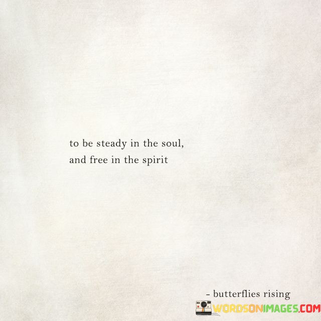 The quote "To Be Steady In The Soul And Free In The Spirit" conveys a message about finding a balanced and harmonious state of being. It suggests that while our inner selves should remain stable and unwavering ("steady in the soul"), we should also nurture a sense of liberation and spontaneity in our thoughts and actions ("free in the spirit").