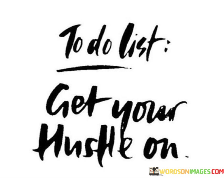 By including "Get Your Hustle On" in our to-do lists, we remind ourselves to remain motivated and committed to our objectives. It serves as a reminder that progress and accomplishments are often the result of determined and persistent effort. Ultimately, this quote encourages us to stay dedicated to our goals and work hard to bring them to fruition.