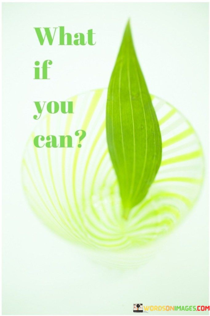 The quote "What If You Can" is a powerful and encouraging statement that prompts us to consider the possibilities and potential within ourselves. It suggests that we should challenge self-doubt and limitations by exploring what we are truly capable of achieving.