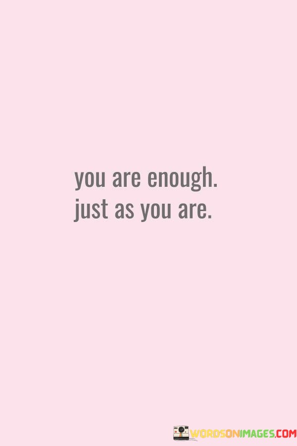 The quote "You Are Enough Just As You Are" conveys a profound message about self-acceptance and self-worth. It reassures us that we don't need to be someone else or meet unrealistic standards to be valuable and deserving of love and respect.