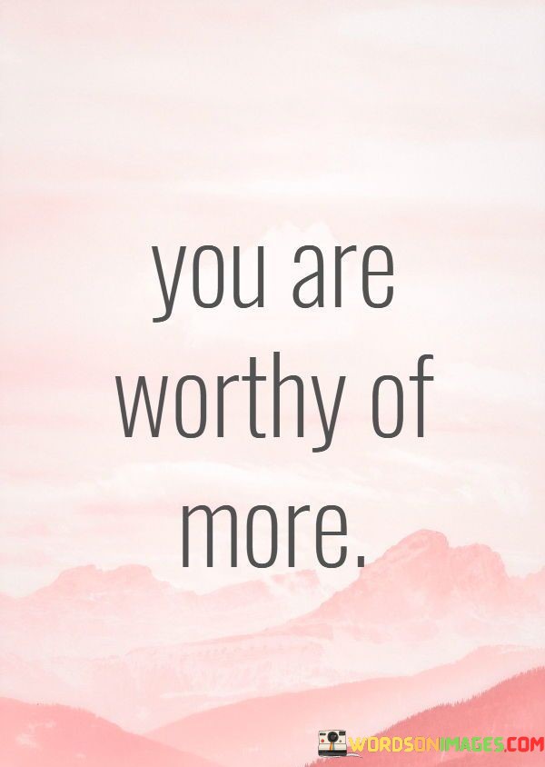 The quote "You are worthy of more" serves as a powerful reminder of your inherent value and self-worth. It emphasizes that you deserve to have positive and fulfilling experiences in life, and you should never settle for less than what brings you happiness and contentment.