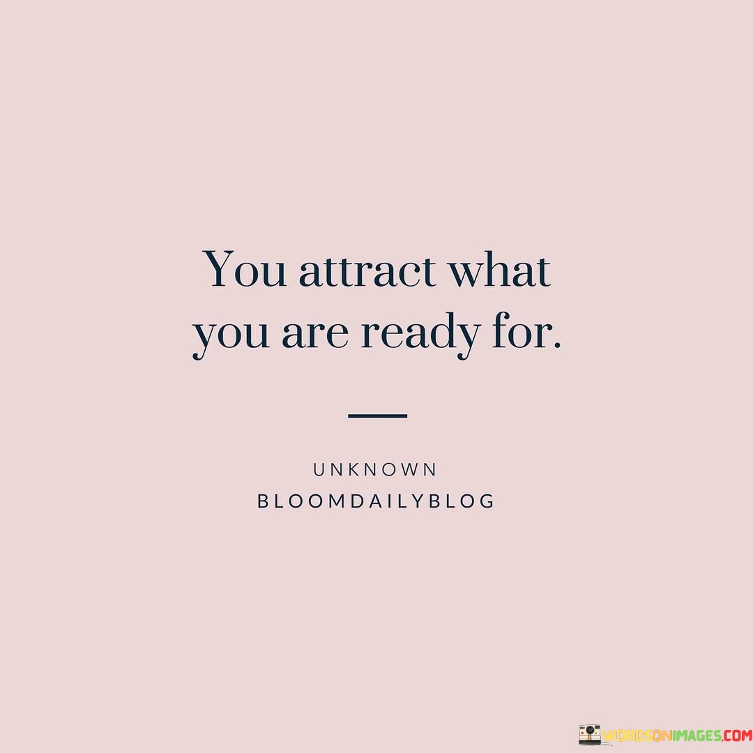 The quote "You Attract What You Are Ready For" holds a valuable lesson about the connection between our readiness and the things that come into our lives. It suggests that our preparedness and openness determine the kind of experiences, opportunities, and people we draw towards us.