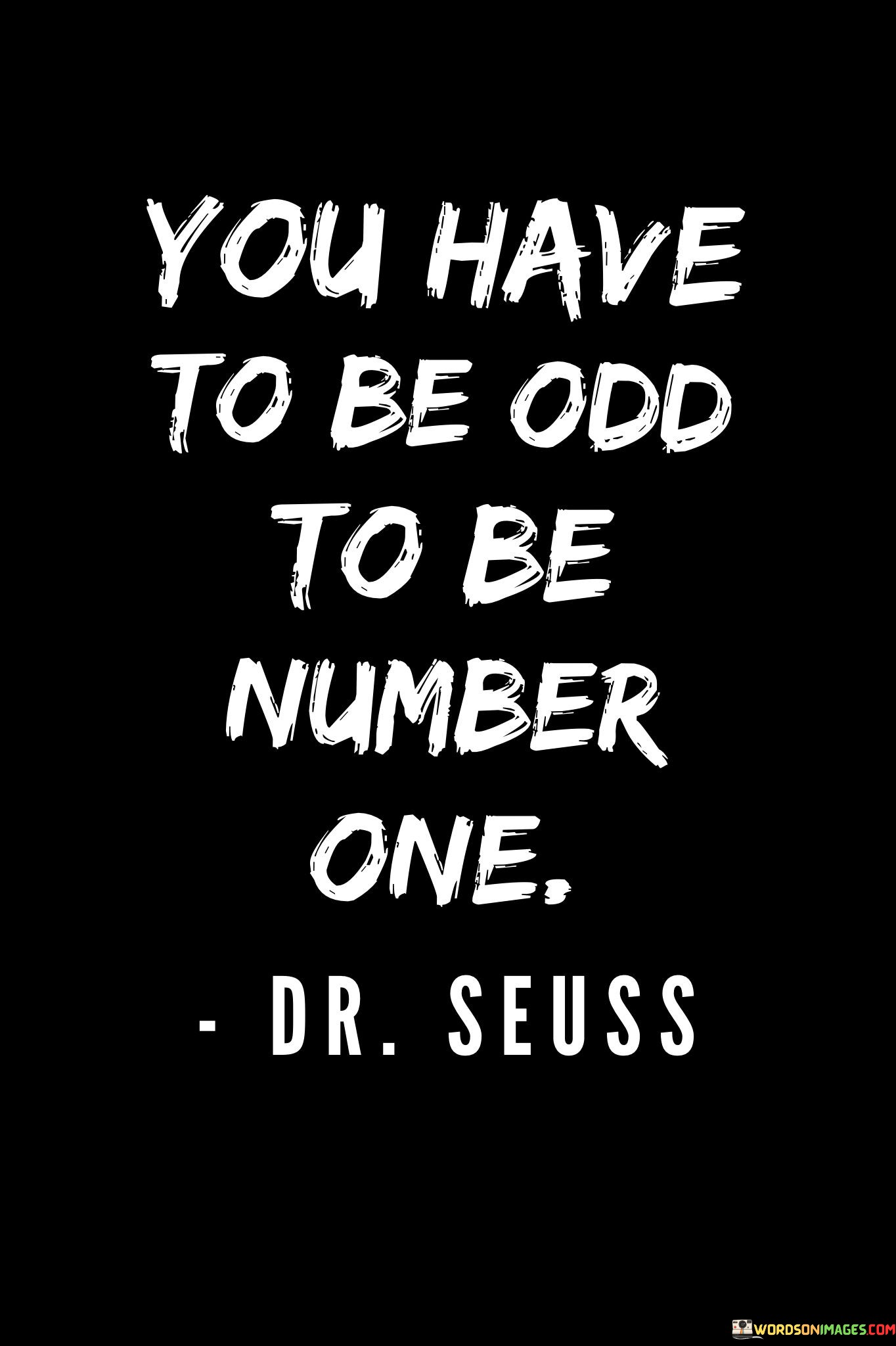 Furthermore, the quote serves as a motivational message, inspiring individuals to have the confidence to pursue their passions and goals even if they feel like outsiders or "odd" in comparison to others. It suggests that being "number one" or achieving remarkable success often requires taking a path less traveled and being willing to explore unconventional approaches. Ultimately, it encourages people to believe in their unique abilities and embrace the journey of self-discovery and self-expression as they strive to reach the pinnacle of their chosen pursuits.