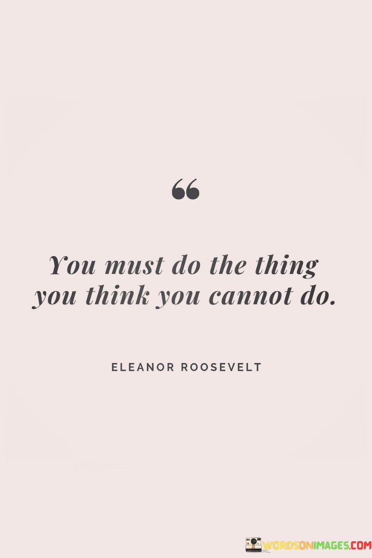 The quote, "You Must Do The Thing You Think You Cannot Do," is a powerful message about pushing your limits and facing your fears. It means that sometimes, the only way to overcome your doubts and limitations is to take action, even when you believe you can't. It's like telling yourself, "I may be scared or unsure, but I'm going to try anyway." This quote encourages you to step outside your comfort zone and discover your hidden capabilities.