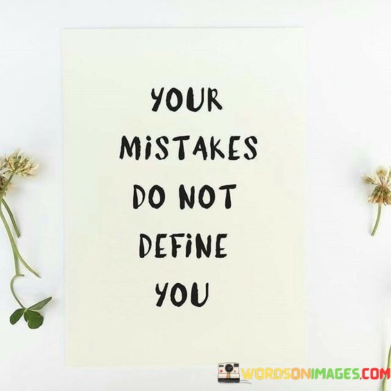 This quote, "Your Mistakes Do Not Define You," means that the errors and blunders you make in life don't determine your entire identity. In simpler terms, the things you do wrong or mess up on don't make up the whole picture of who you are as a person. It's like saying that just because you make a wrong turn on a road trip doesn't mean the entire journey is ruined.