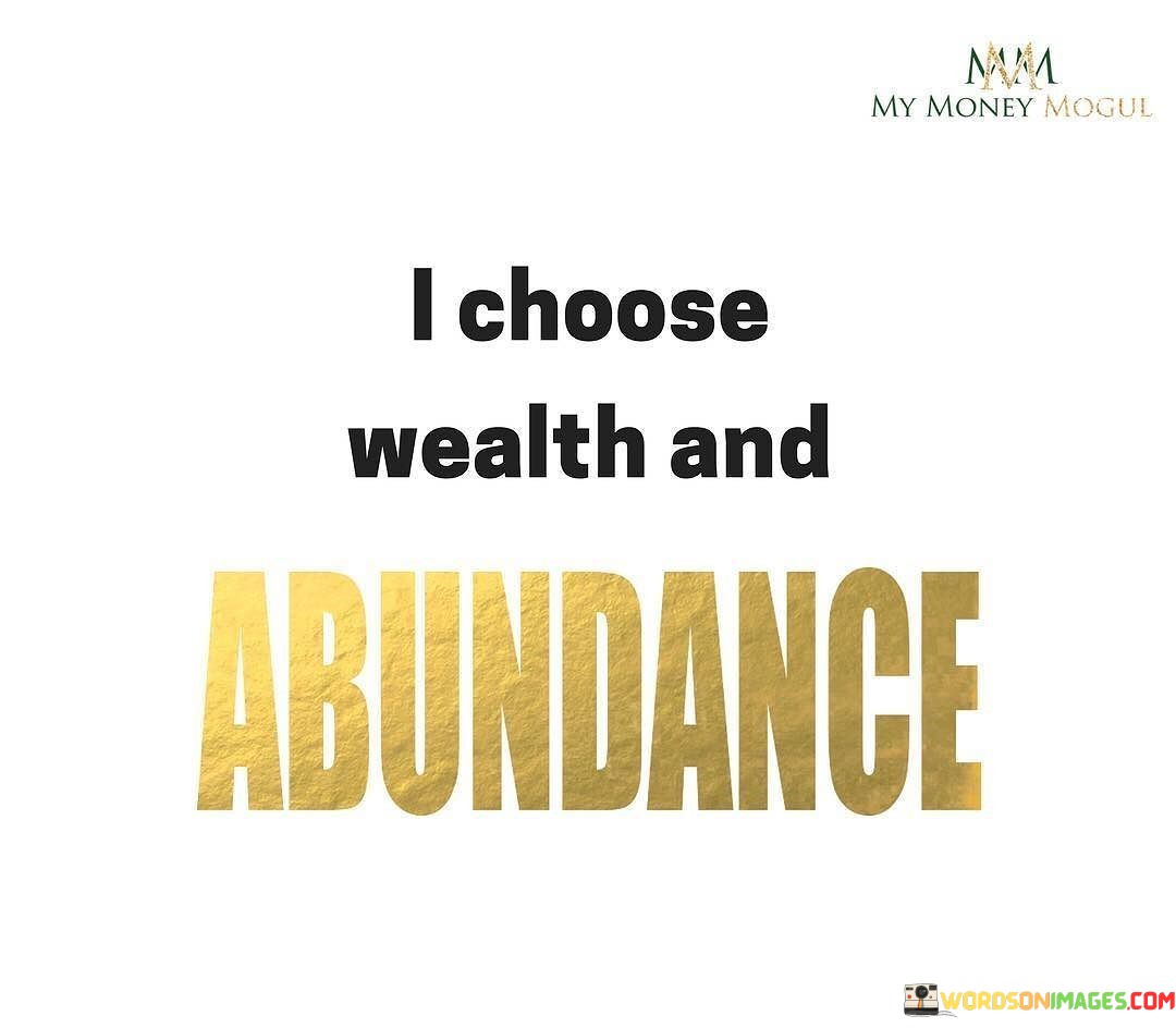 This quote, "I-Choose-Wealth-And-Abundance," is like a personal declaration of intent. It signifies a conscious decision to prioritize wealth and abundance in one's life.