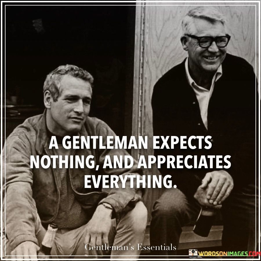 In life, a true gentleman doesn't wait for things to come his way, nor does he demand too much. Instead, he values all that he receives. He finds happiness in appreciating even the smallest gifts or kind gestures. This approach brings happiness and respect for others.