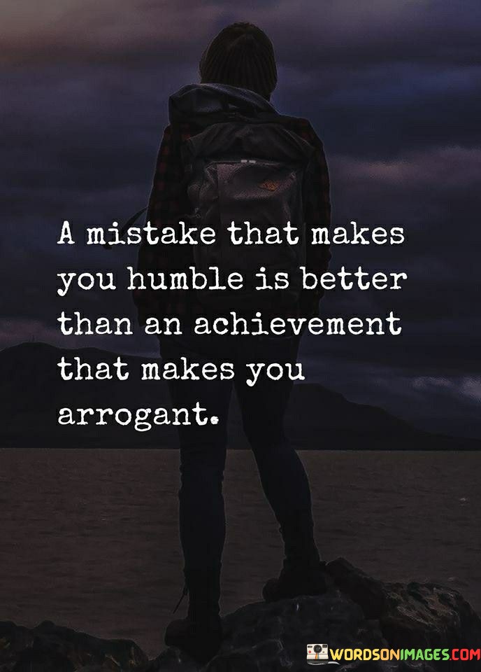 This quote underscores the significance of humility and personal development that can arise from embracing mistakes. It draws a clear distinction between the positive effects of a mistake that leads to humility and the negative consequences of an achievement that fosters arrogance.