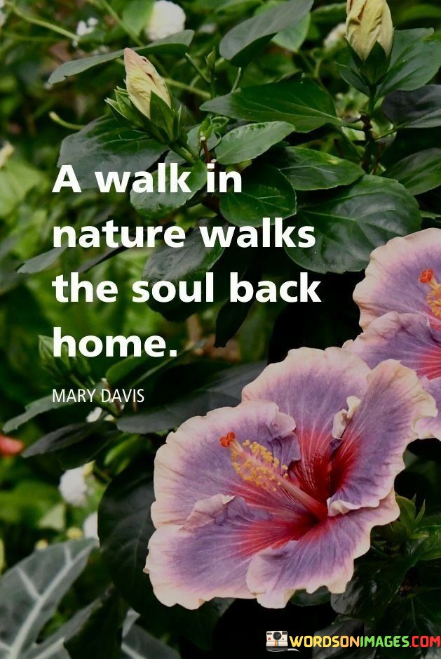 This quote means that being in nature can bring calmness to our inner self. When we're surrounded by nature, our soul feels a sense of belonging and peace.