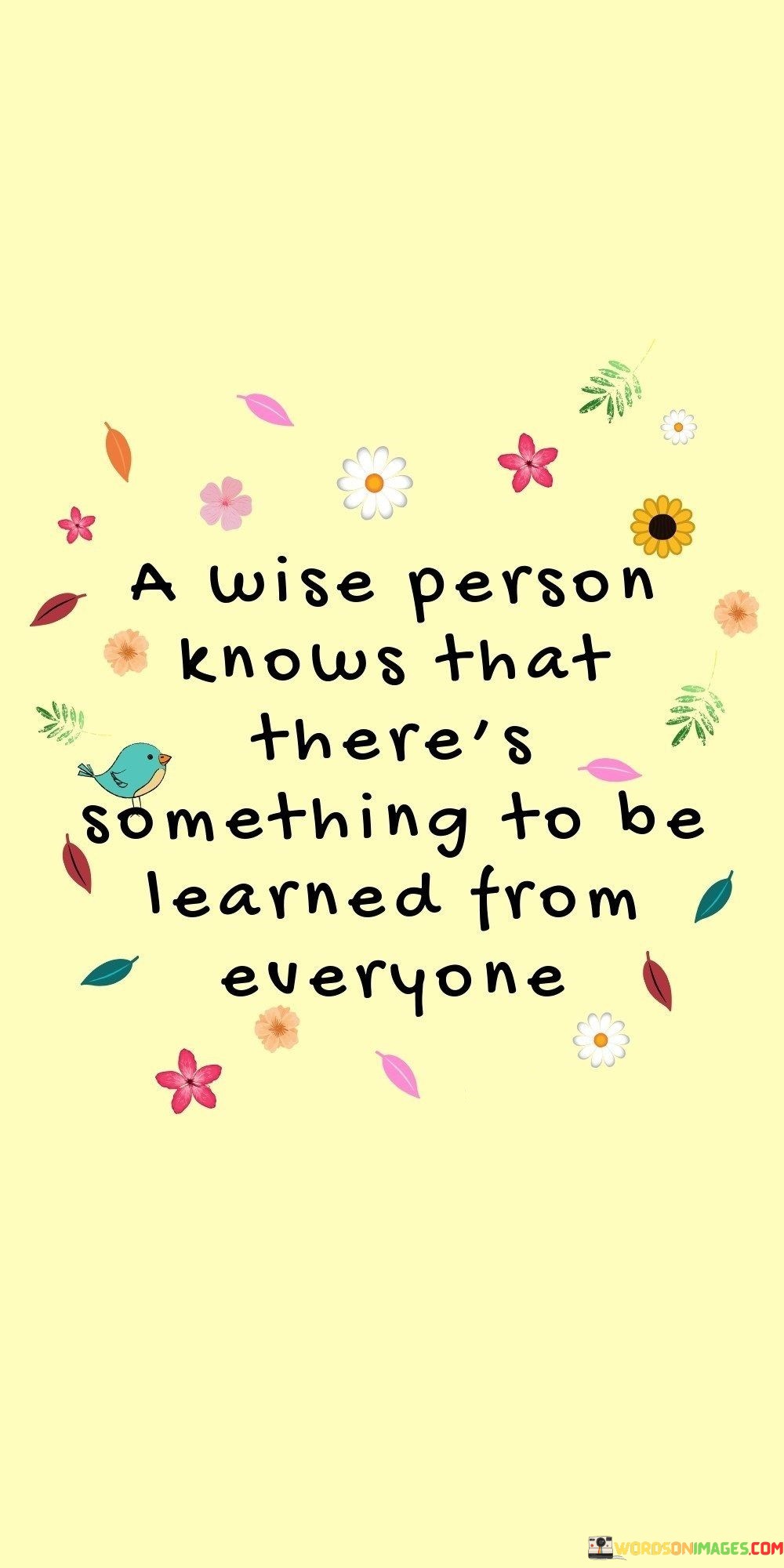 The quote "a wise person knows that there's something to be learned from everyone" emphasizes the importance of open-mindedness and humility. It suggests that wisdom is recognizing that each individual holds valuable insights, regardless of their background or status.