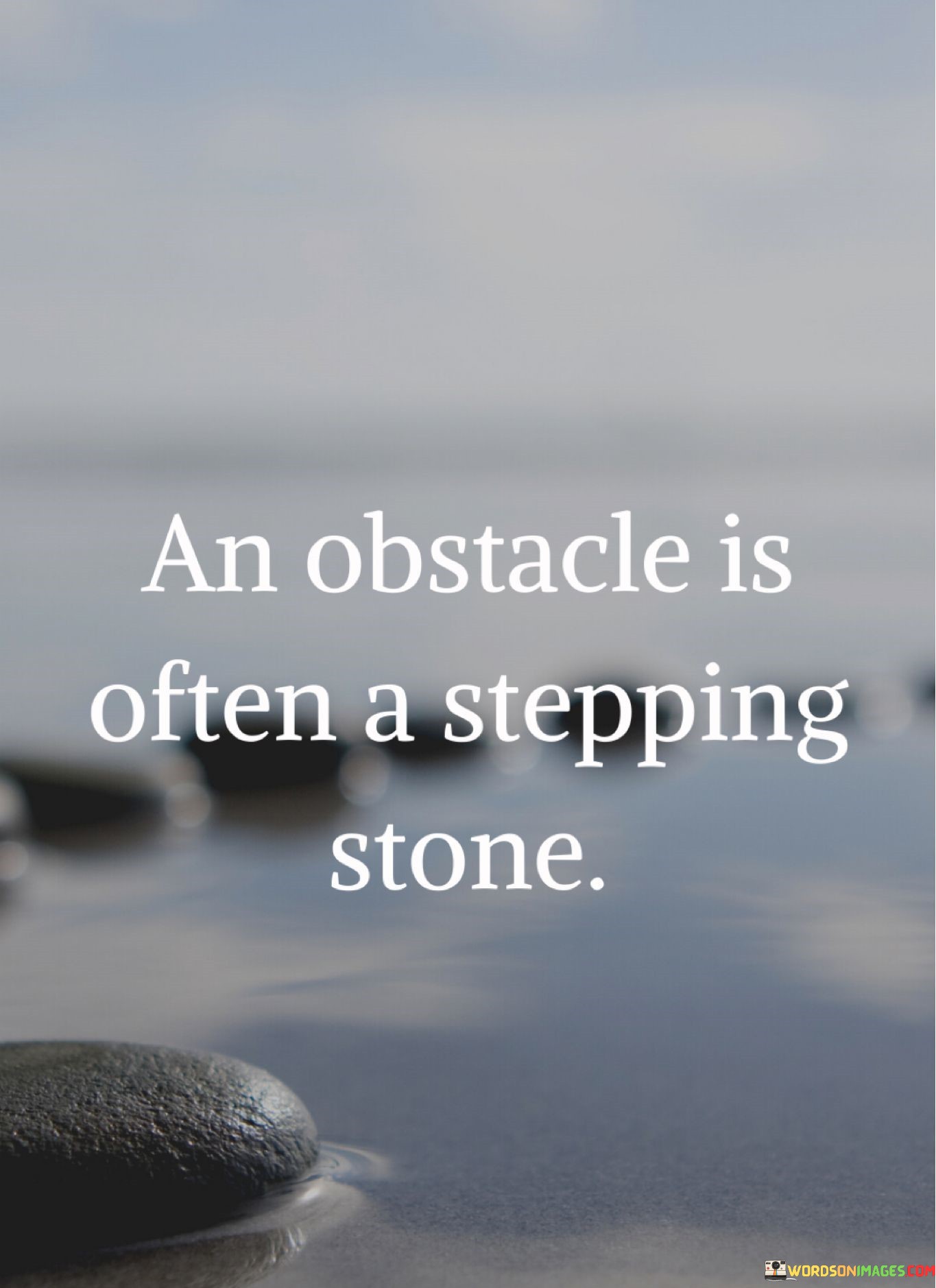 The quote "An obstacle is often a stepping stone" conveys a valuable perspective on how challenges and difficulties in life can serve as opportunities for growth and progress. It suggests that obstacles should not be viewed as insurmountable barriers but rather as potential pathways to success.