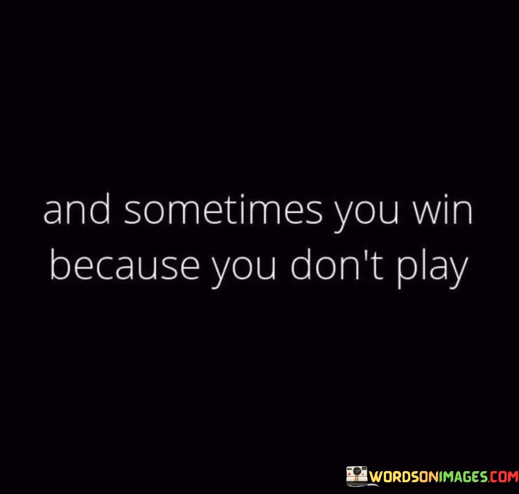 The quote "And sometimes you win because you don't play" means that there are situations where not participating or getting involved can actually lead to a favorable outcome. In life, we often feel pressured to take part in every opportunity or competition, believing that it is the only way to succeed. However, this quote suggests that sometimes refraining from participating can be a strategic decision that ultimately leads to a positive result.