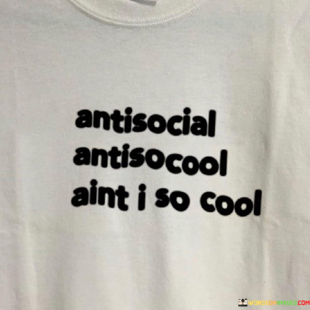 The quote "Antisocial Antisocool Aint I So Cool" plays with words to convey a message about social behavior and perceptions. It consists of three parts: "antisocial," "antisocool," and "Aint I So Cool."