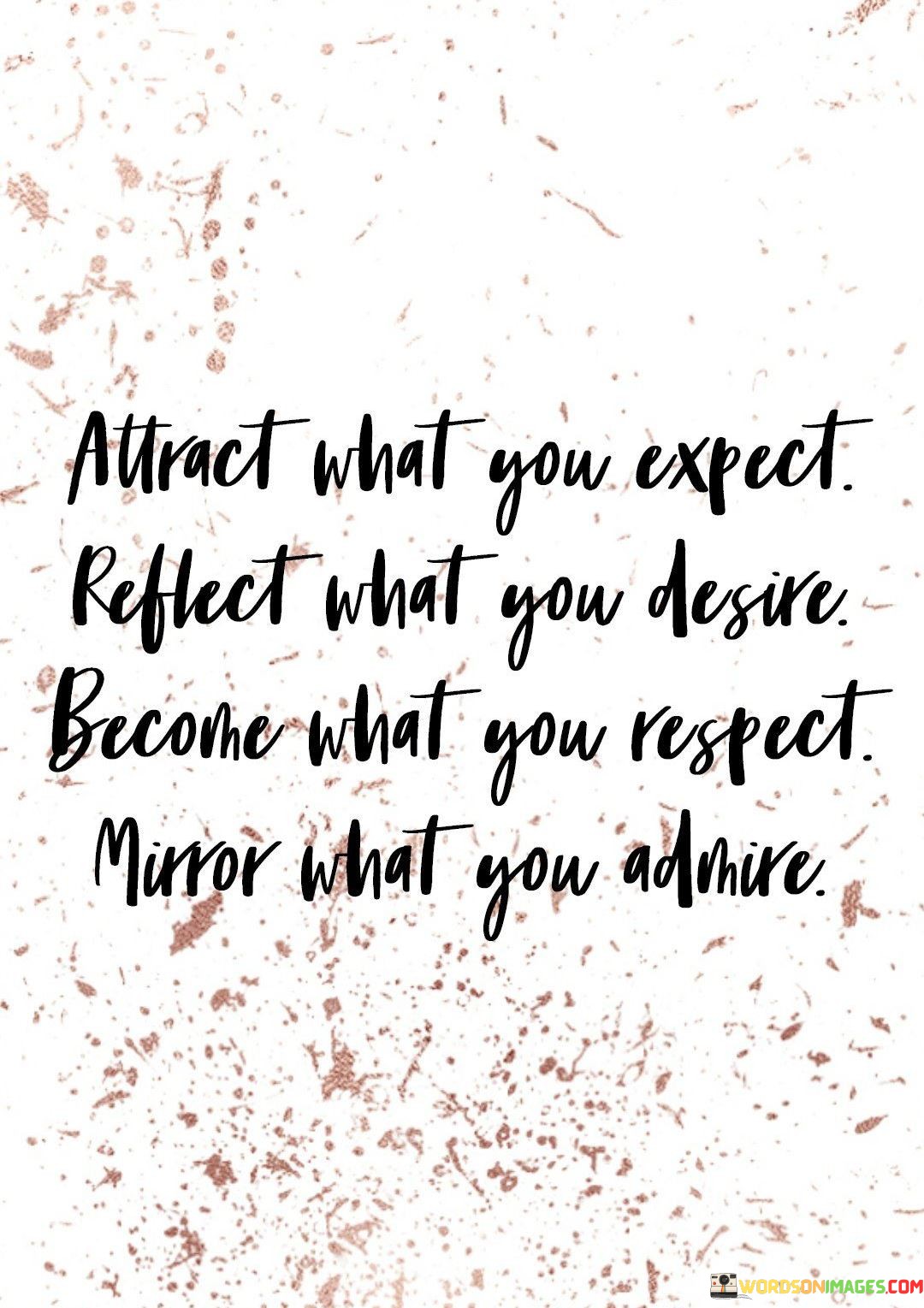 Draw in what you anticipate. Your thoughts influence outcomes. Expect positivity, welcome it in. Reflect your dreams in actions. Aspirations manifest when mirrored. Desire's reflection shapes your reality. Radiate what you wish for. Your reflections and expectations shape your world.