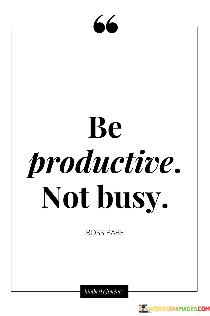 The quote "Be productive, not busy" reminds us to prioritize meaningful work over simply filling our time. It's about focusing on tasks that bring real value and results rather than engaging in endless activities that might look busy but achieve little.
